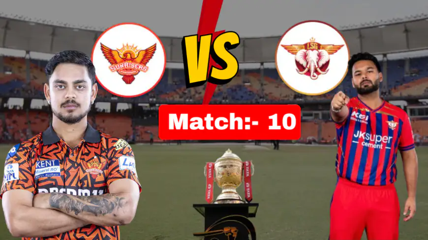आईपीएल 2026 सीजन का 10वां मुकाबला सनराइजर्स हैदराबाद और लखनऊ सुपर जायंट्स के बीच टी20 फॉर्मेट में होगा। SRH अपनी होम ग्राउंड पर LSG का स्वागत करेगी। राजीव गांधी इंटरनेशनल स्टेडियम की पिच आमतौर पर बल्लेबाजों को फायदा देती है, जिससे हाई स्कोरिंग मैच की संभावना है।