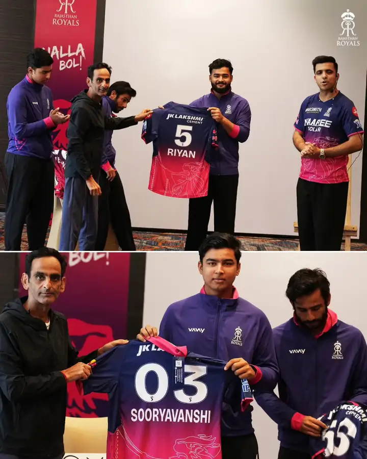 जर्सी लॉन्च के दौरान जडेजा, युवा बल्लेबाज वैभव सूर्यवंशी और यशराज पूंजा ने नई नीली पिंक जर्सी को हाथ में लेकर पोज दिया। यह जर्सी JK Lakshmi Cement के स्पॉन्सरशिप में आई है, जिसमें टीम का लोगो और प्लेयर नंबर 23 प्रमुखता से दिख रहे हैं। जडेजा ने इवेंट में कहा कि वे टीम के साथ अपनी राय और सुझाव साझा करने के लिए उत्सुक हैं। वैभव सूर्यवंशी ने फोकस बनाए रखने और परफॉर्मेंस पर ध्यान देने की बात कही, जबकि युवा खिलाड़ियों की मौजूदगी ने टीम के भविष्य को लेकर उत्साह बढ़ाया।